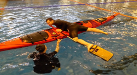 - 14h15 – 16h45 : Exercices de sécurité en kayak de mer dans la piscine avec plusieurs ateliers proposés sur l’eau ou au bord de l’eau et adaptés aux différents niveaux de pratique :