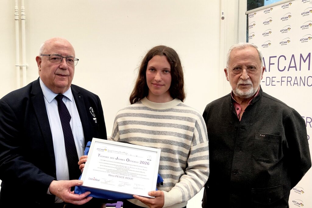 L’édition 2026 du Trophée des Jeunes officiels de l’AFCAM (Association française du corps arbitrale multisports) d’Île-de-France s’est tenue le 16 avril 2026 à la Mairie du 16ème arrondissement à Paris, à l’issue de l’assemblée générale de l’association. Nina Pesce-Roue, juge de portes régional slalom et sportive de Haut Niveau en équipe de France U23, a été distinguée au Tableau d’Honneur multisports de l’arbitrage d’Île-de-France.